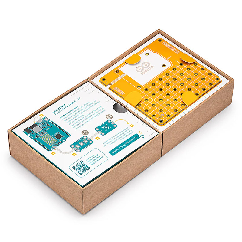 Arduino Plug and Make Kit — это самый простой способ начать работу с Arduino. В наборе есть всё необходимое для создания ваших первых семи проектов, а также для множества других идей, которые публикует сообщество или придумаете вы сами!