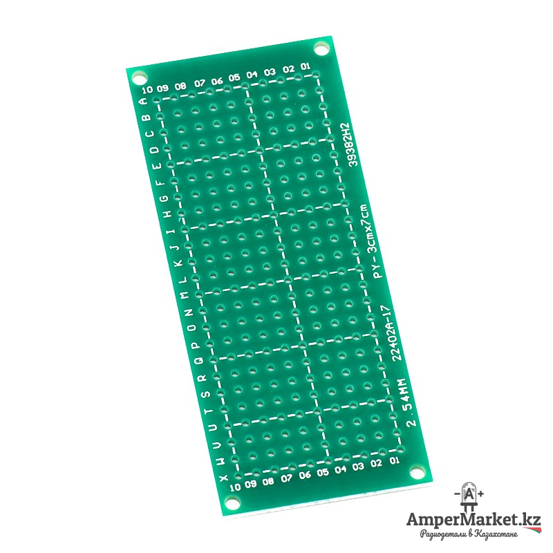 Односторонняя монтажная плата для макетирования с метализированными отверстиями. Размер 20х80 мм.