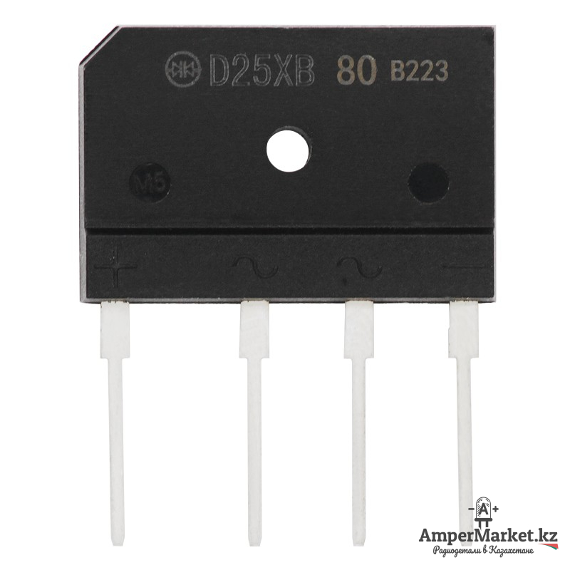 Диодный мост D25XB80 рассчитан на обратное напряжение до 800 В и прямой ток до 25 А. Рекомендуется, чтобы обратное напряжение диодного моста превышало входное напряжение с трансформатора хотя бы в два раза.