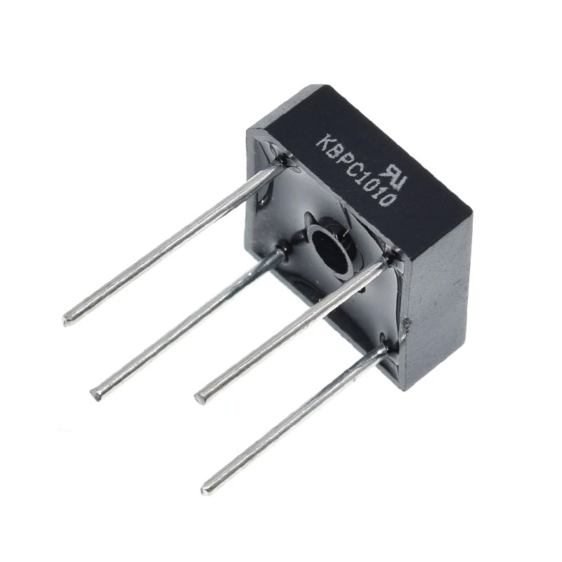 Диодный мост KBPC1010 рассчитан на обратное напряжение до 1000 В и прямой ток до 10 А. Рекомендуется, чтобы обратное напряжение диодного моста превышало входное напряжение с трансформатора хотя бы в два раза.