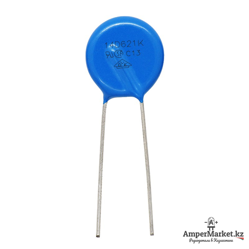Варистор 14D621K (620 В) представляет собой диск диаметром 14 мм с выводами, выполняющими 2 функции: для пайки (монтажа) на печатную плату, как теплоотвод (в качестве радиатора). Варистор способен эффективно подавлять импульсные помехи и кратковременные скачки напряжения большой амплитуды.