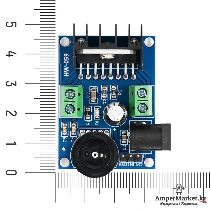 Удобным моментом при работе с данным модулем является возможность подключить источник питания с уровнем напряжения в диапазоне от 3 до 18 В постоянного тока. Питание можно подавать на 5,5 мм DC-разъем. Источники входного аудиосигнала подключаются через 3-х контактную гребенку из выводов GND, IN1, IN2.