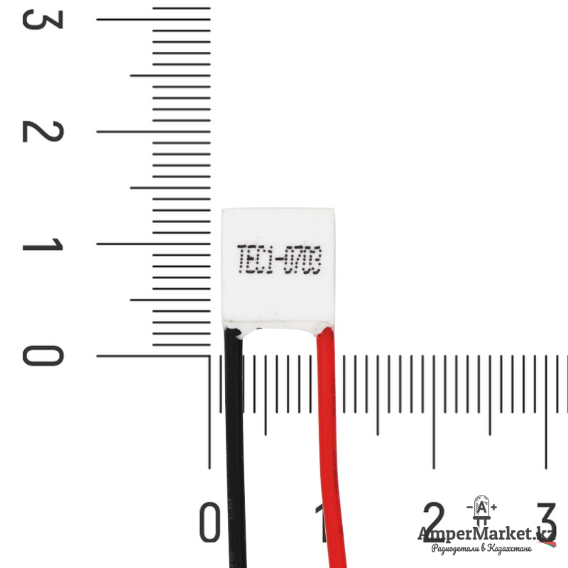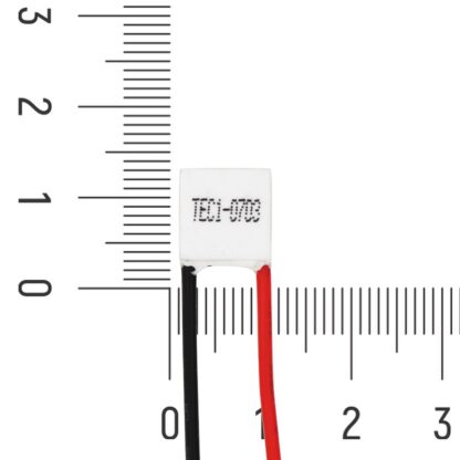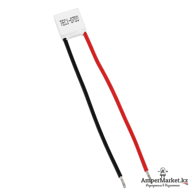 Элемент Пельтье TEC1-00703 (10×10 мм) способен создавать разность температур между его противоположными сторонами под действием электрического тока. То есть одна сторона будет нагреваться, а другая — охлаждаться. Этот процесс называется эффектом Пельтье. Если же отключить элемент от источника питания и создать разность температур на пластинах, то элемент начнет сам вырабатывать электрический ток. Этот процесс, обратный эффекту Пельтье, носит название эффекта Зеебека.