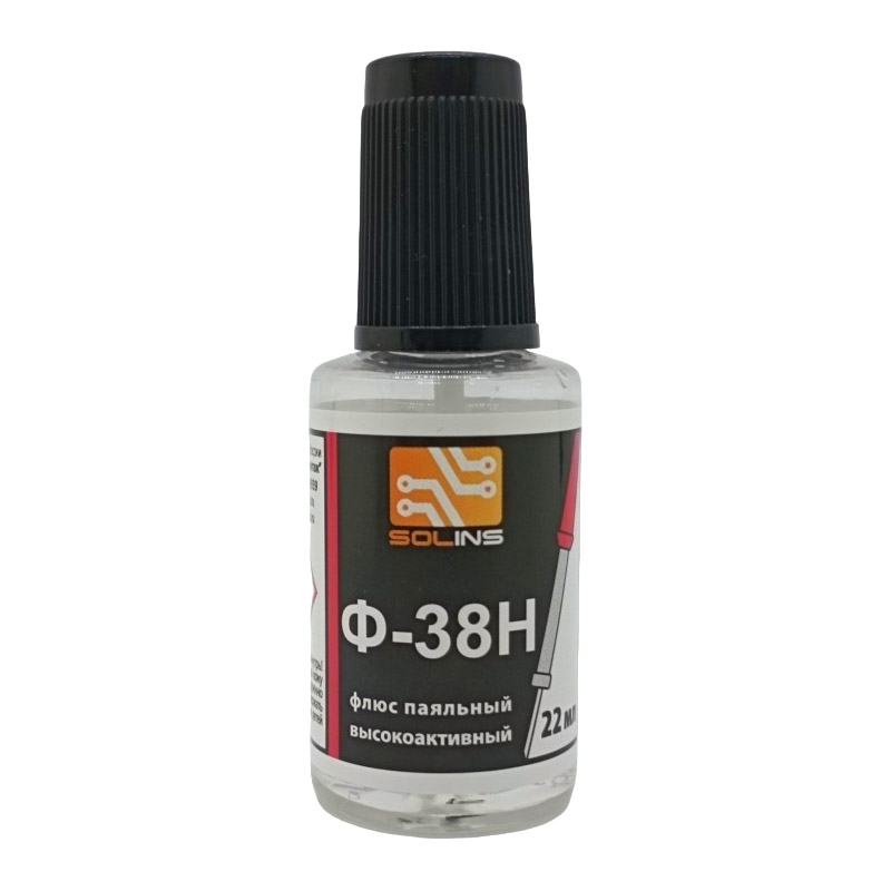 Высокоактивный паяльный флюс Ф-38Н производства компании Solins представляет собой прозрачную жидкость, предназначенную для пайки нихрома, константа, бронзы на основе бериллия и алюминия, медных сплавов, а также устойчивых к образованию коррозии сталей, посредством легкоплавких припоев.