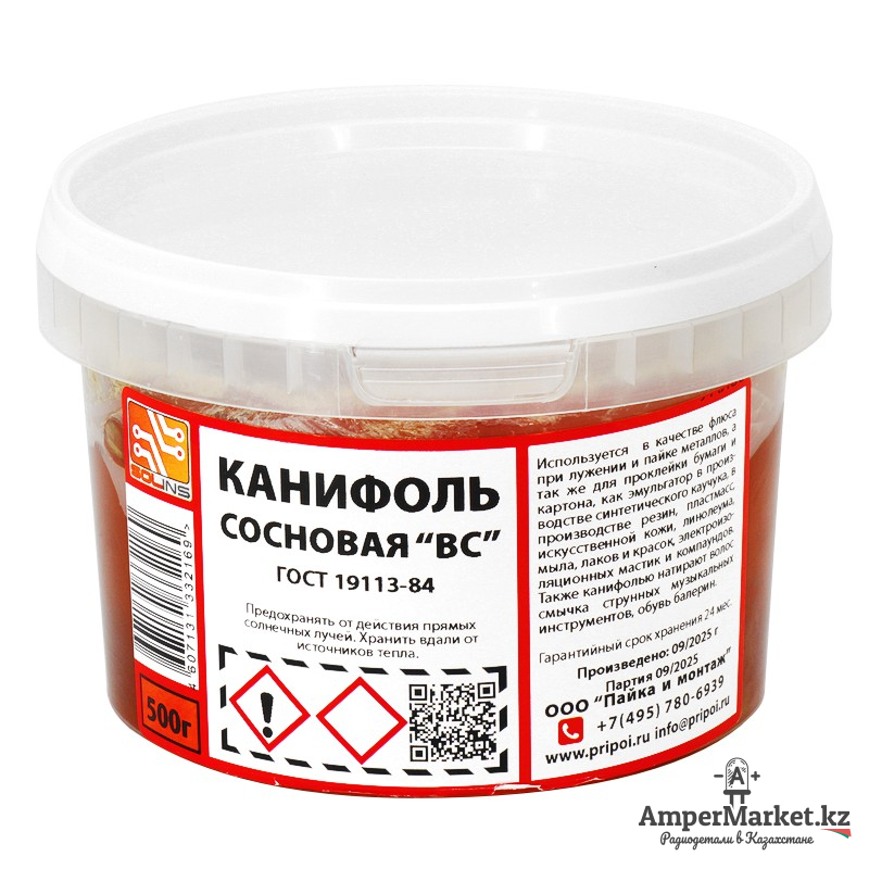 Канифоль сосновая (500 г), Solins – стекловидное вещество, используемое совместно с припоем во время пайки. Самый доступный и популярный неактивный флюс, предназначенный для удаления тонких и нестойких оксидов с поверхности под пайку, улучшения растекания жидкого припоя при пайке печатных плат и радиокомпонентов.