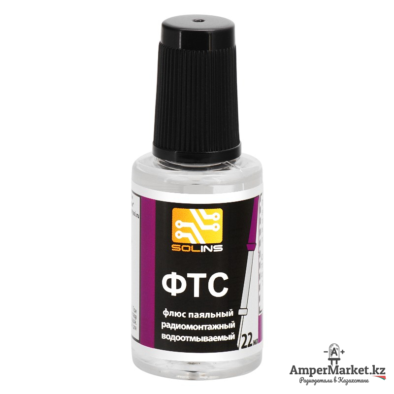 Флюс нейтральный ФТС, Solins применяется для пайки деталей радиоэлектронной аппаратуры. Нейтрален, не содержит канифоли, хорошо смывается водой. Имеет слабую коррозийную активность, термостоек, не дымит.