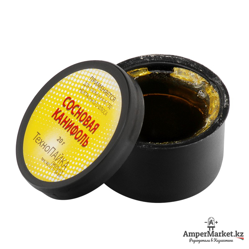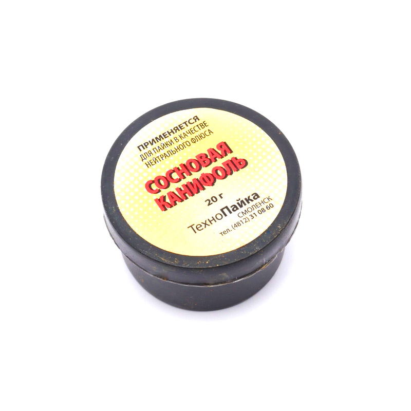 Канифоль сосновая (20 г) для пайки оловянно-свинцовыми припоями. Применяется для пайки в качестве нейтрального флюса. Рекомендуется для низкотемпературной пайки. Температура плавления: 110…150 °C.