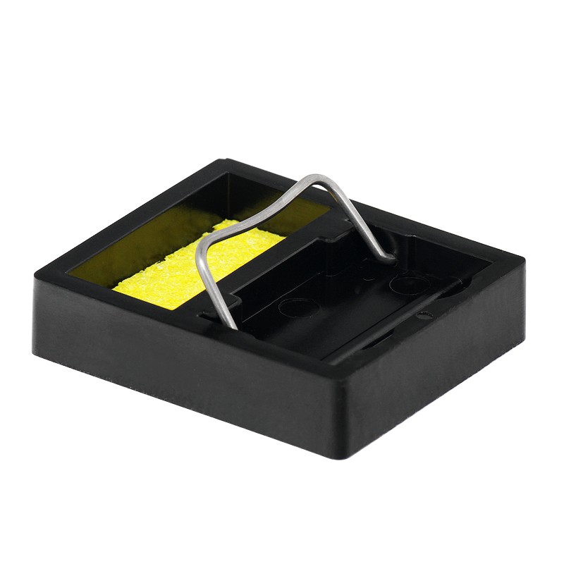 Подставка под паяльник с губкой позволяет безопасно хранить паяльник в промежутках между использованием. В подставке предусмотрен ложемент для хранения губки, используется при аккуратной очистки жала инструмента. Подставка небольшого размера для экономии рабочего пространства.