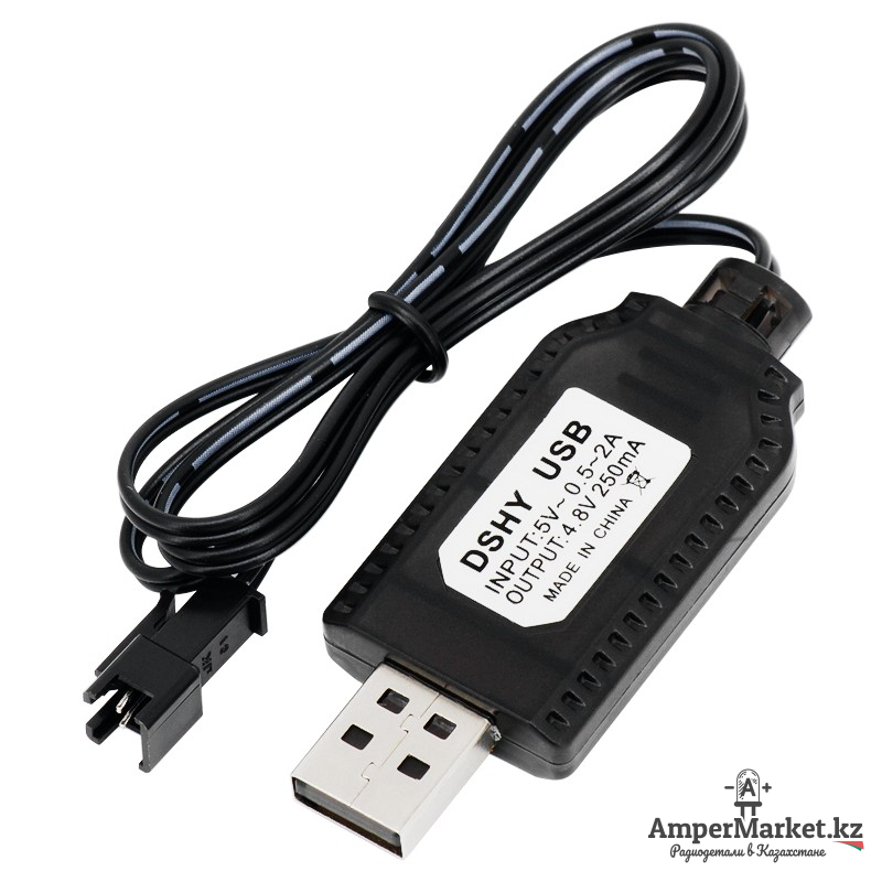Зарядное устройство для Ni-MH / Ni-Cd сборок напряжением 4.8V с разъемом JST SM (папа) и выходом на USB порт. Подобные сборки применяются на многих детских игрушках на радиоуправлении.